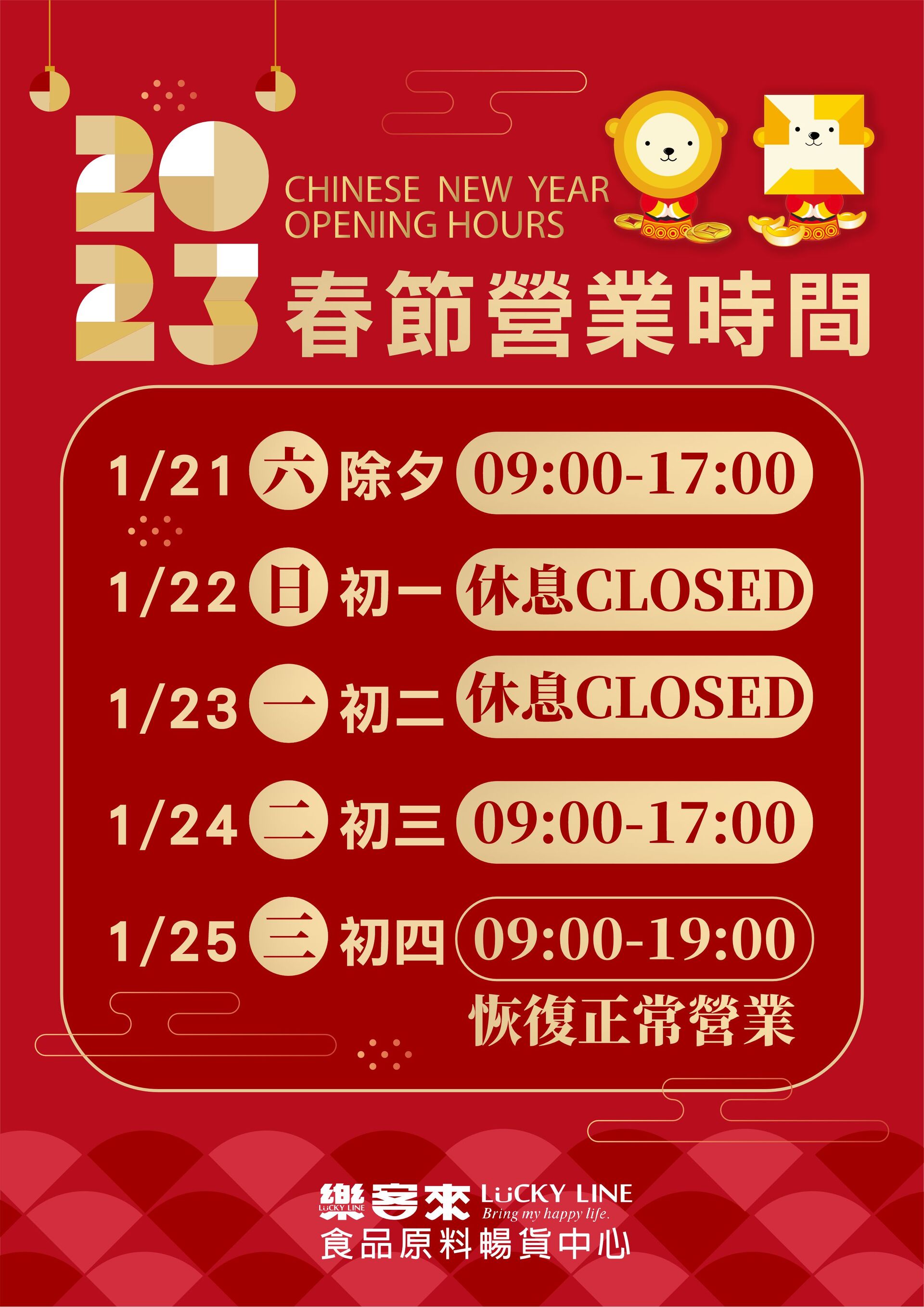 2023 樂客來春節營業時間公告